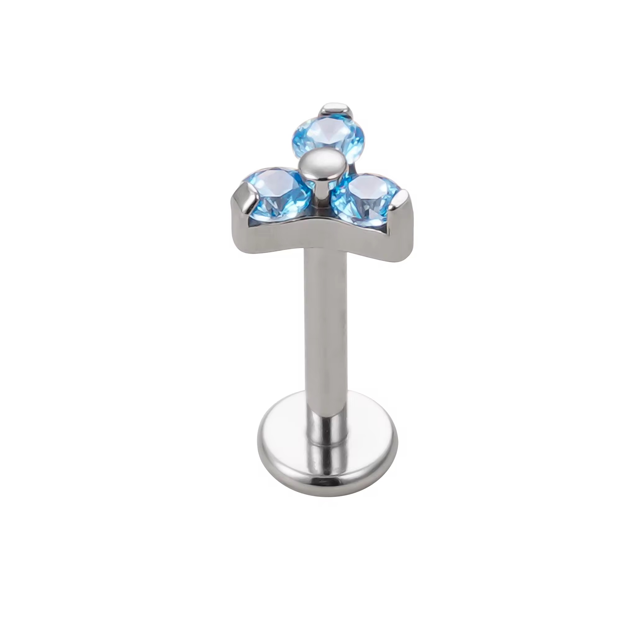 3 CZ Blaze Set Trinity Tops ASTM F-136 Internally Threaded for Ear Piercings – Implant Grade Jewelry