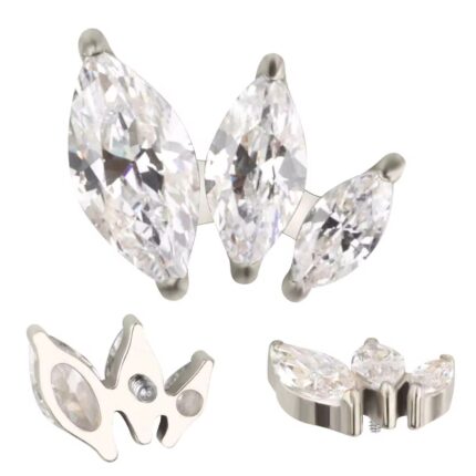 ASTM F136 Titanium 5 CZ Blaze Set Curve Top Internally Threaded Labret for Ear Piercings – Implant Grade Jewelry
