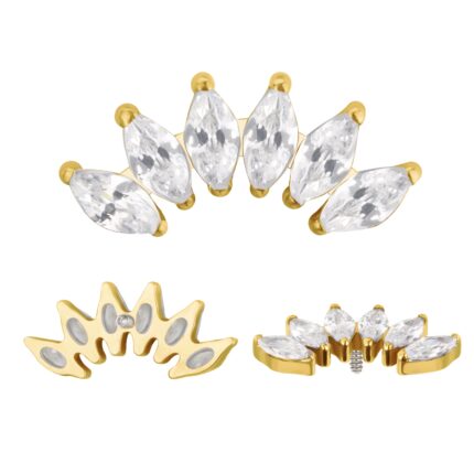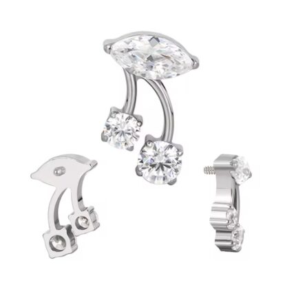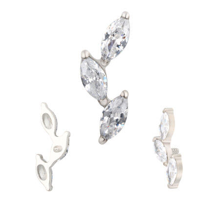 This elegant design features five cubic zirconia (CZ) stones arranged in a curved blaze setting, creating a smooth, flowing line that follows the natural shape of your ear. The multi-stone layout enhances brilliance while maintaining a refined, minimal look. The curved top design ensures a flattering fit, and the internally threaded post allows for smooth, irritation-free insertion, helping protect your piercing and promote optimal healing.