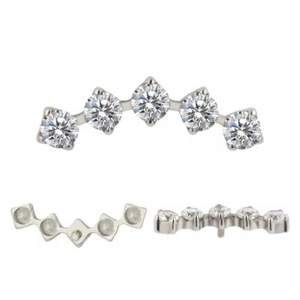 ASTM F136 Titanium 9 CZ Blaze Set Curve Top Internally Threaded Labret for Ear Piercings – Implant Grade Jewelry