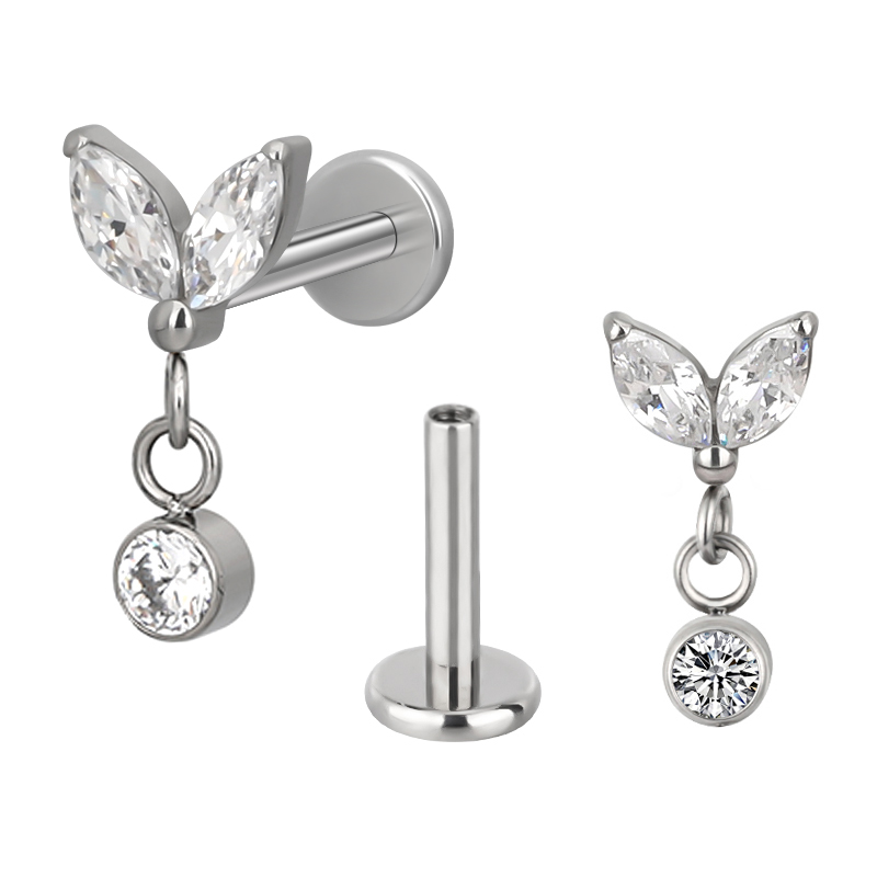Leaf Drop Ear Labret Jewelry – Titanium Dangle Piercing for Ear