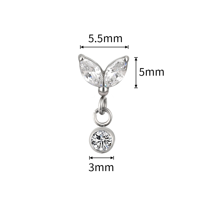 This refined design features a dual marquise-cut CZ leaf top, forming a delicate leaf/butterfly-inspired shape that adds a soft, modern aesthetic. Suspended below is a bezel-set round CZ dangle, creating subtle movement and enhancing sparkle with every turn. The combination of marquise stones and a bezel-set drop delivers a balanced look of brilliance and sophistication.